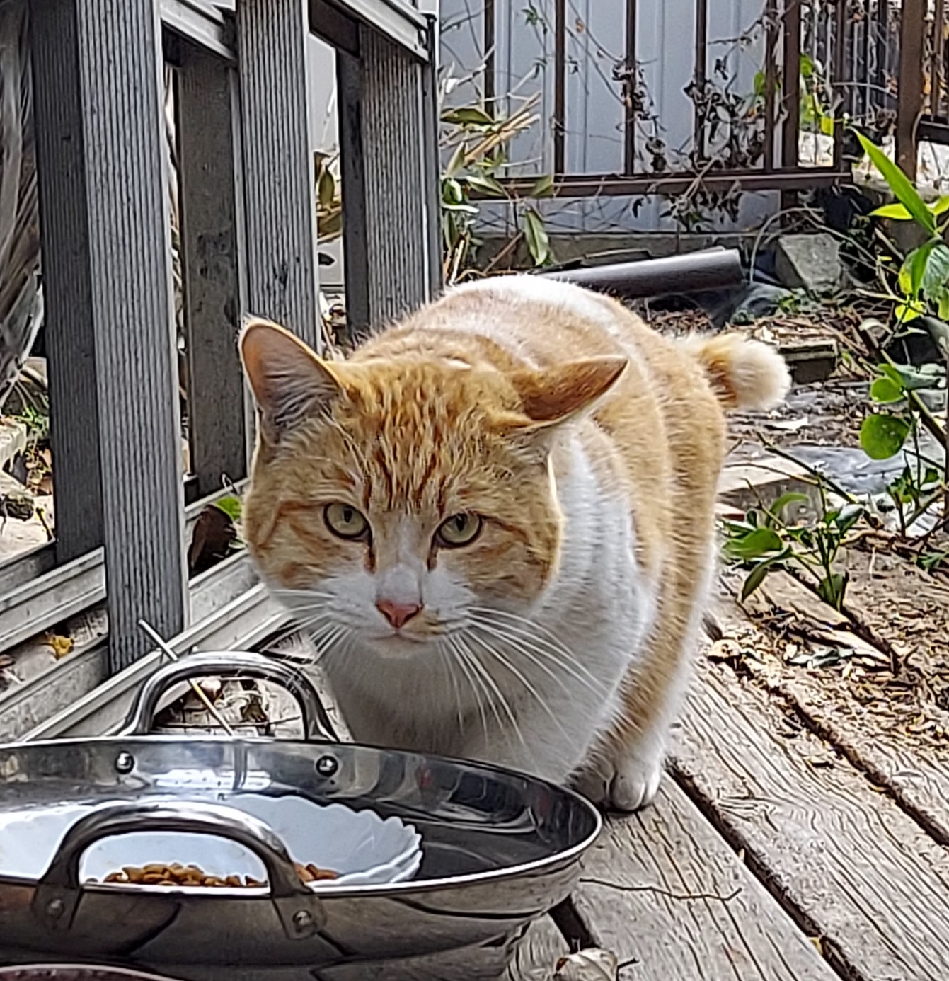 ロッキー、熊五郎、マルタやちゃごのいる庭にはミーちゃんの娘の2匹(避妊済み)がご飯を食べに来ます。