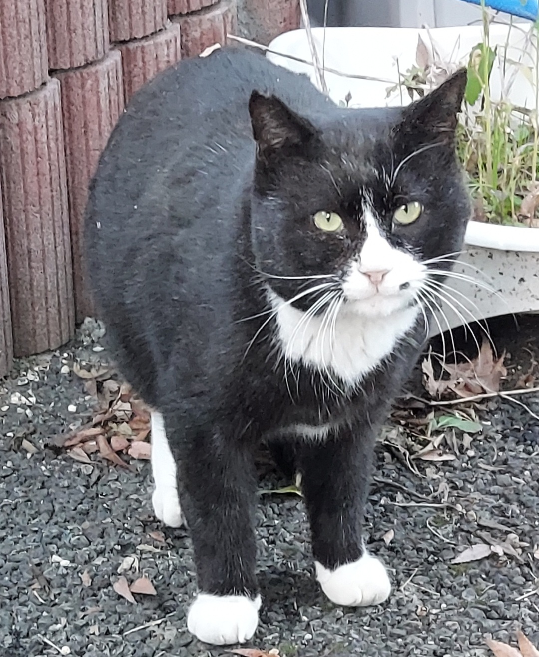 庭猫たちは私を避けて遠回りするのにこの子は平気です。